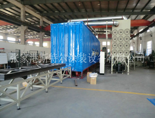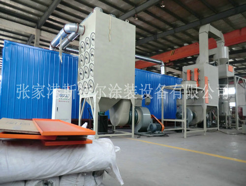 10、噴砂(丸)房室體采用聚苯乙烯發泡塑料夾心彩板房組成,具有消音功能,美觀、堅固、密閉。