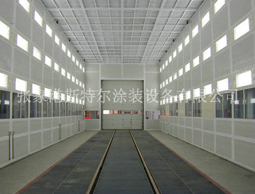 (6)油漆室采用了上進風、下排煙管道的干井式油漆室。